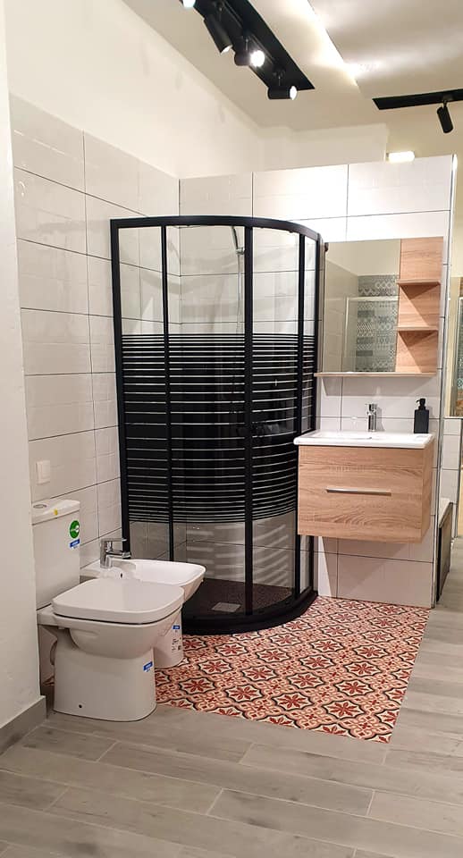 CABINE DOUCHE QUART DE ROND 80X80X190 BERLIN LINE ZEBRA PROF.NOIR VIT 6MM
