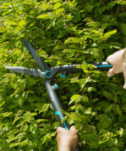 La cisaille à haies EasyCut GARDENA est idéale pour tailler les haies aisément et sans effort. Ses poignées ultra-légères et ergonomiques sont fabriquées à partir de fibres renforcées pour garder l’outil très léger. De plus, grâce à la technologie ErgoTec les poignées reposent parfaitement entre vos mains pour travailler sans vous fatiguer. Ses lames ondulées avec revêtement anti-adhérence garantissent une grande efficacité pour tailler les larges espaces.