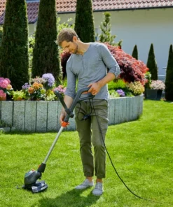 Le coupe-bordures électrique PowerCut 650/28 est idéal pour couper les bordures de larges pelouses de et pour débroussailler les zones longues et difficiles d’accès. Léger et facile à utiliser, le coupe-bordures électrique GARDENA dispose de nombreuses caractéristiques pour faciliter le travail d’entretien de la pelouse. Il est doté d’une poignée inférieure ajustable très facilement et d’une seule main. Son manche est à la fois télescopique, pour s’adapter à la taille de tous les utilisateurs et inclinable pour pouvoir couper confortablement l’herbe sous les obstacles (mobilier de jardin, trampoline etc..). Le coupe-bordures électrique PowerCut 650/28 GARDENA est équipé de la fonction dresse-bordure avec sa tête inclinable pour vous permettre d’effectuer des coupes verticales. Il est également doté d’un étrier de protection des plantes pour éviter d’endommager vos parterres de fleurs. Astuce : La bobine de fil peut être stockée en dessous de la poignée pour qu’elle soit toujours à portée de main.